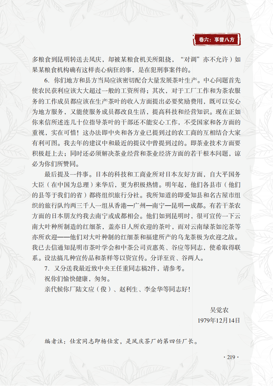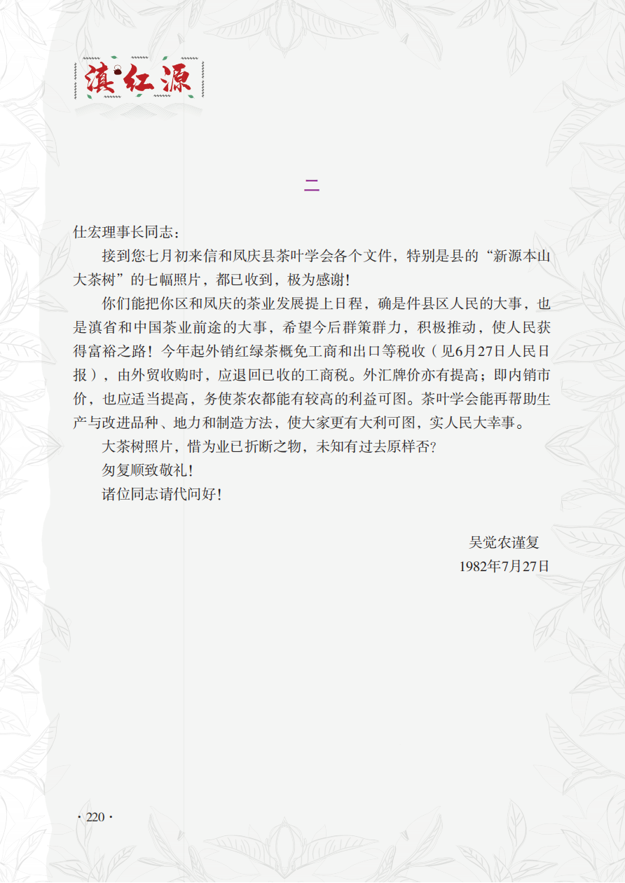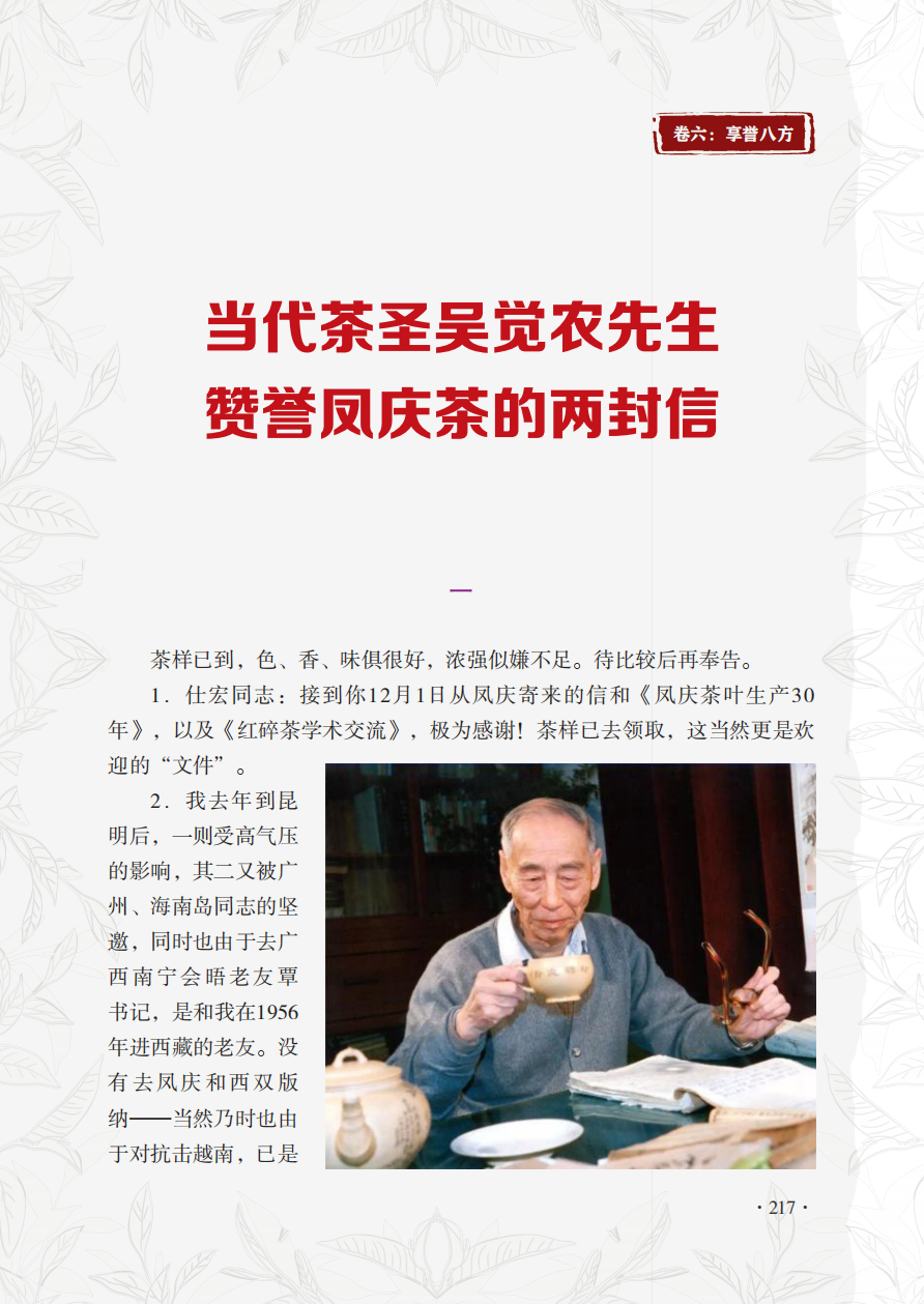 当代茶圣吴觉农先生赞誉凤庆茶的两封信